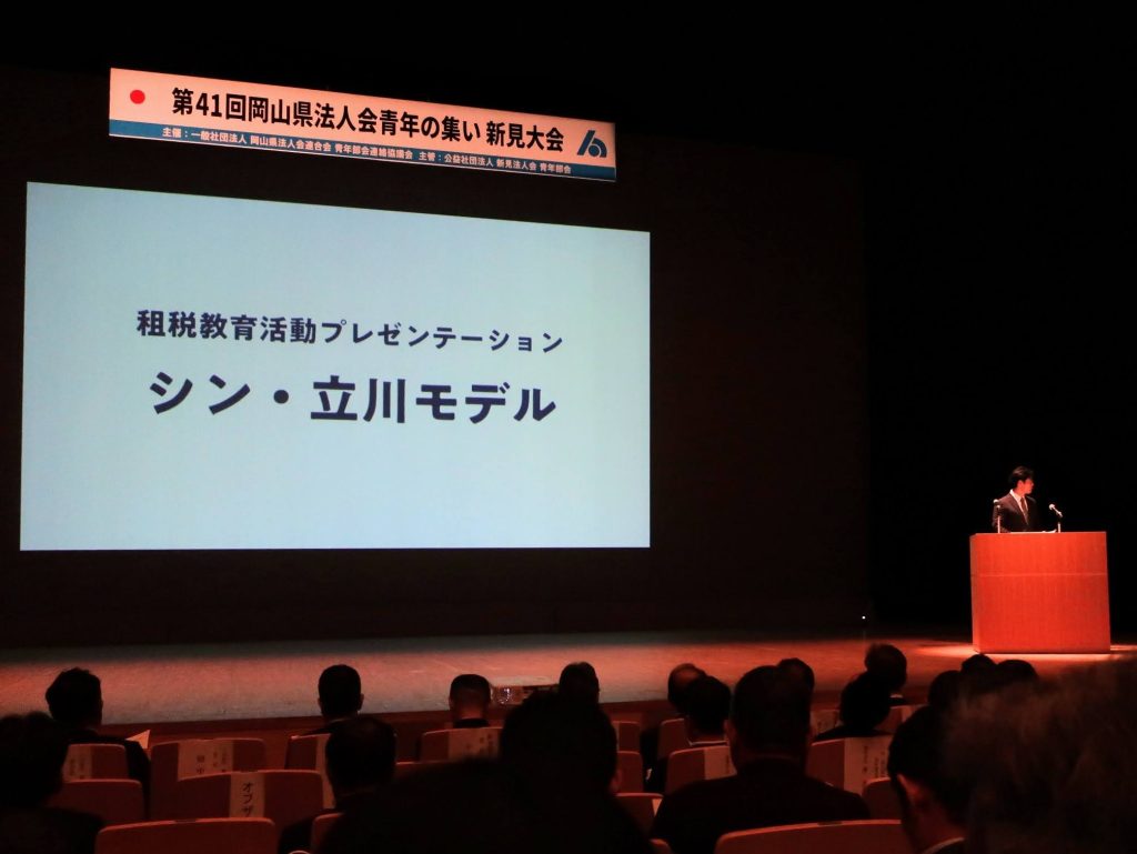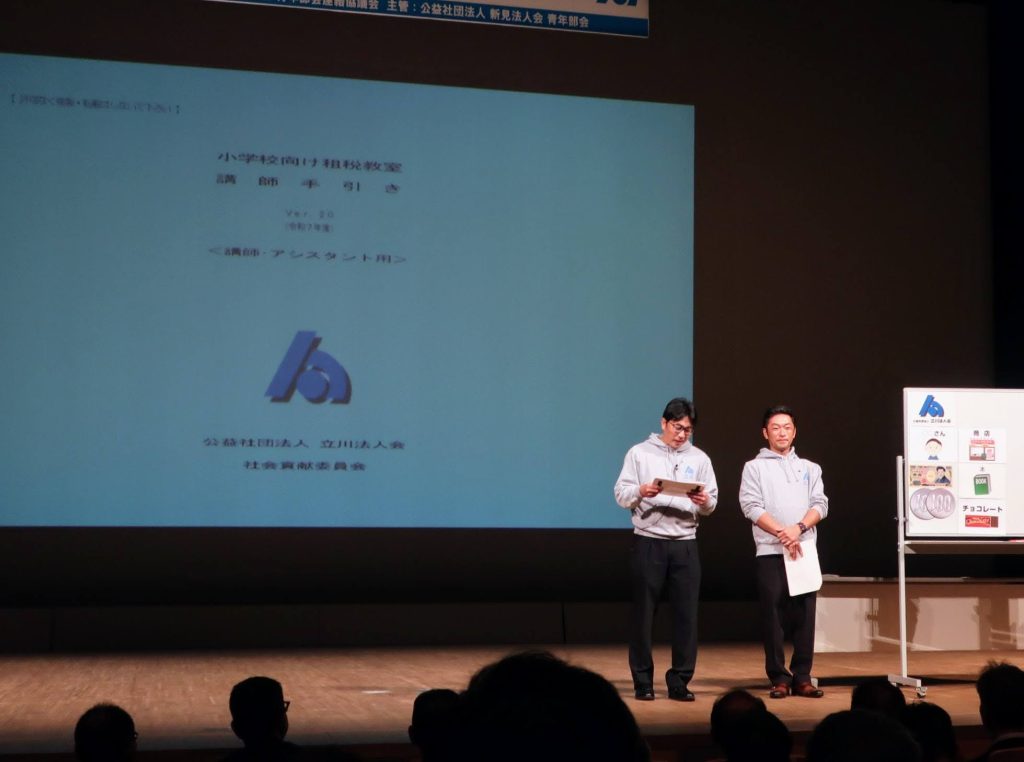 当日のプログラムでは、式典・福利厚生制度推進研修会に続き、立川法人会青年部による租税教育プレゼンテーションが行われました。全国大会の「租税教室プレゼンテーション大会」で最優秀賞を受賞した内容を伺い、若い世代への税教育の実践的な取り組みを知ることができ、大きな刺激を受けました。
