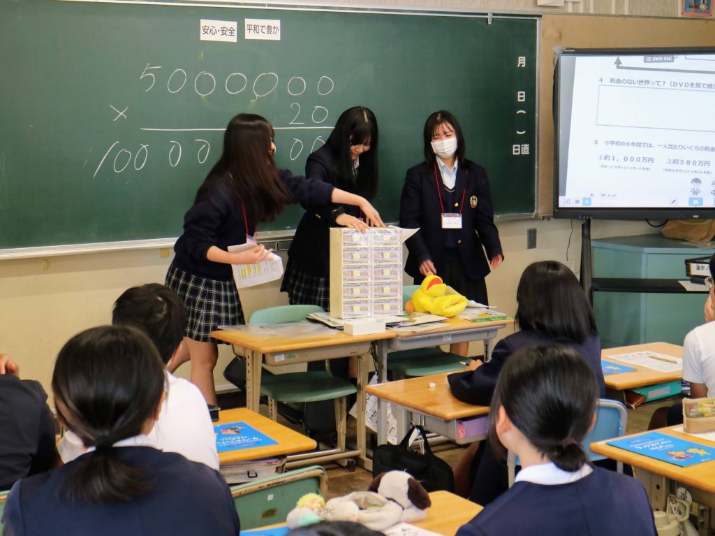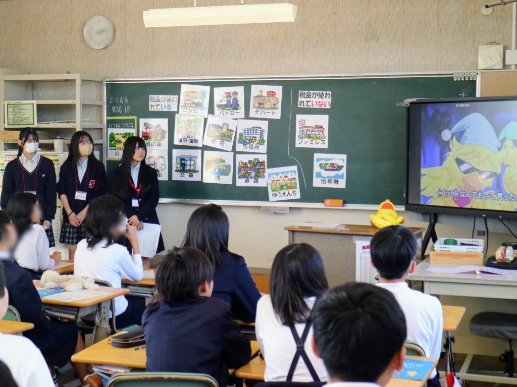 授業では、高校生たちがクイズや身近な事例を交えながら、「税金はどんなところで使われているのか」「私たちの生活と税金の関係」などを丁寧に説明しました。児童たちは積極的に手を挙げて答えたり、笑顔で発言したりと、教室は終始にぎやかな雰囲気に包まれました。