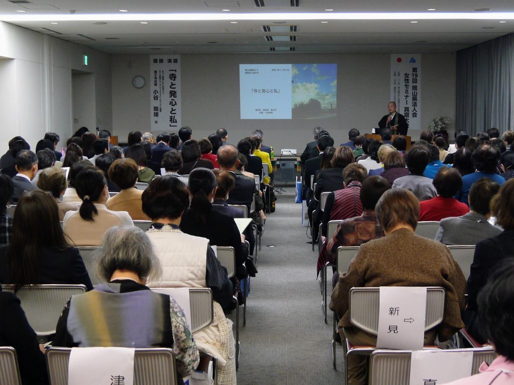 開会式では各会の活動報告に続き、事例発表や昼食交流会が行われました。記念講演では、小谷剛璋氏(福王寺住職)を講師に迎え、「寺と発心と私」という演題で講話があり、参加者は熱心に耳を傾けていました。